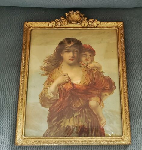 Title (ebay affiliate link): Antique Gold Gesso Picture Frame Finial + Famous Print Lady in Red Baby