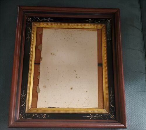 Antique Eastlake Walnut Picture Frame Gold Stencil Insert Black Accents
