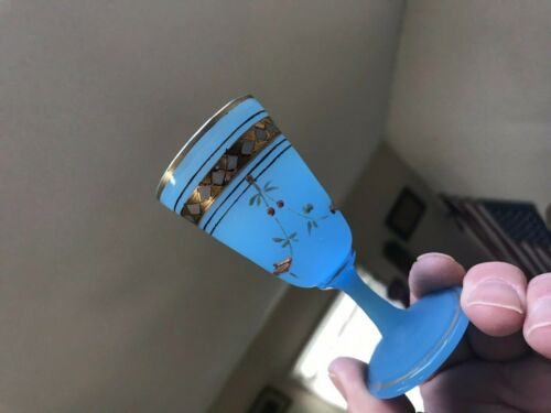 Title (ebay affiliate link): Blown Wine Glass Cordial Blue Flint Glass Hand Painting Sandwich Glass Maybe 18