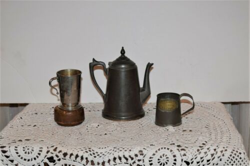 Title (ebay affiliate link): Antique 3pcs. of Metal Ware Small Tea/coffee Pot, Collapsible Cup Tin