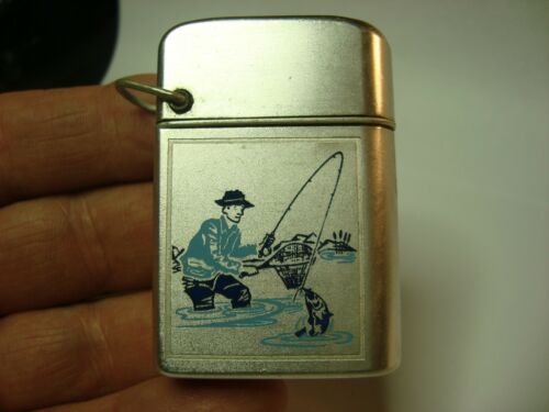 Title (ebay affiliate link): Vintage Storm Master Aluminum Lighter w Classic Fisherman Scene-& Key-chain Loop