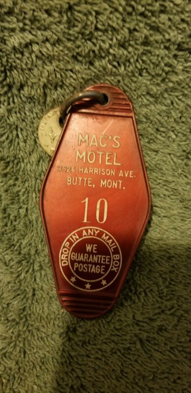 Vintage Butte Montana Mac''s Hotel Key Chain Tag with Key