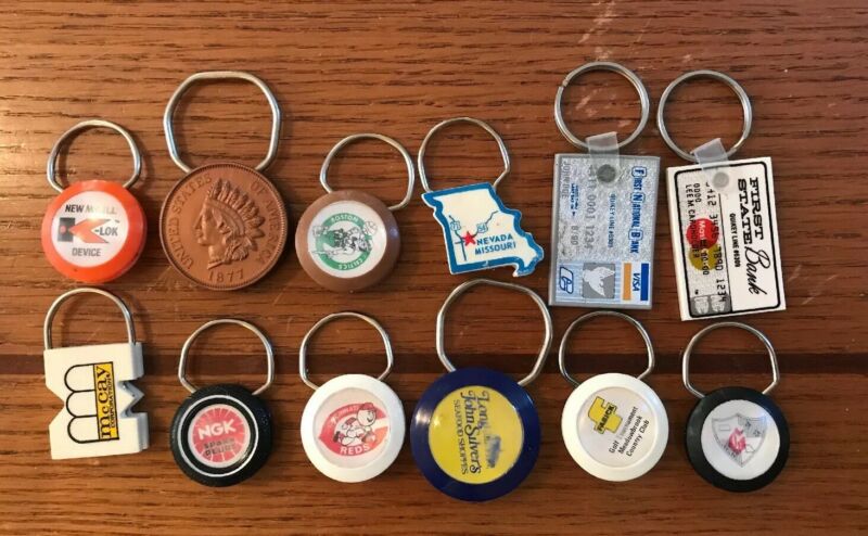 Title (ebay affiliate link): 12 Vintage Advertising Promotional Key Chain Ring Lot