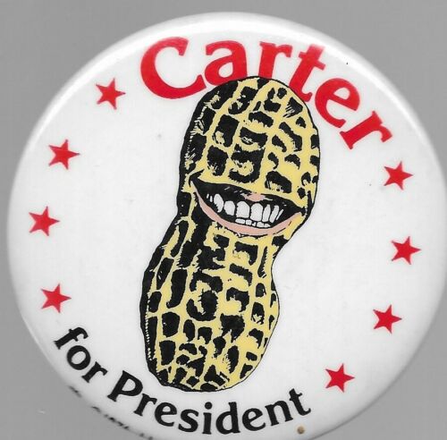 Title (ebay affiliate link): JIMMY CARTER FOR PRESIDENT, SMILING PEANUT 1976 POLITICAL CAMPAIGN PIN