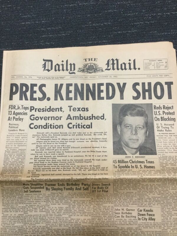 Title (ebay affiliate link): EARLY President Kennedy Assassination - November 22, 1963 Maryland Newspaper