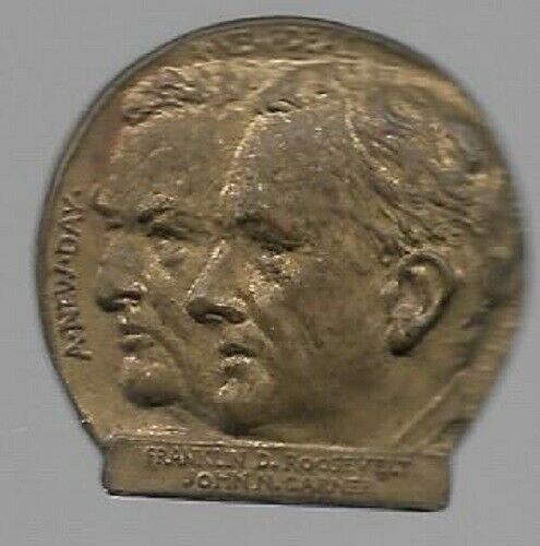 Title (ebay affiliate link): FRANKLIN ROOSEVELT, GARNER NEW DEAL BRASS JUGATE POLITICAL PIN