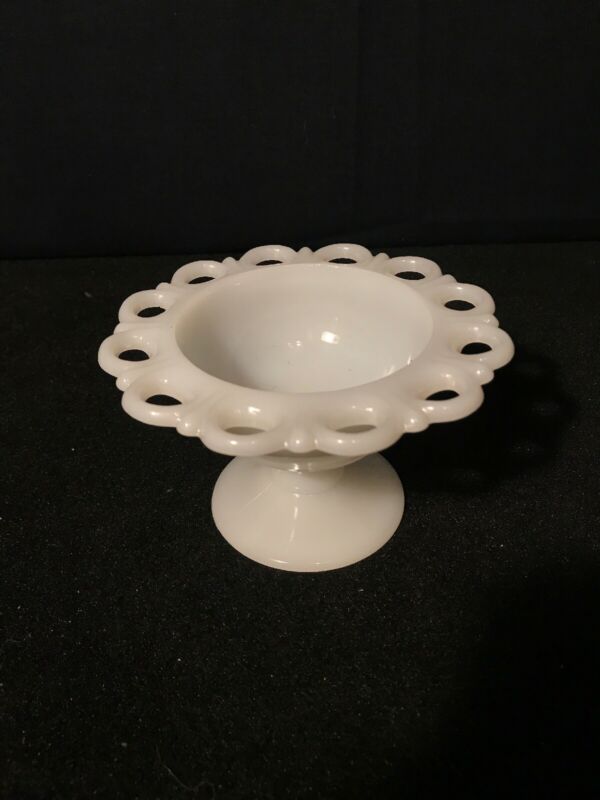 Title (ebay affiliate link): Vintage White Milk Glass Eyelet Footed Candy Dish Compote Bowl Wedding MGB