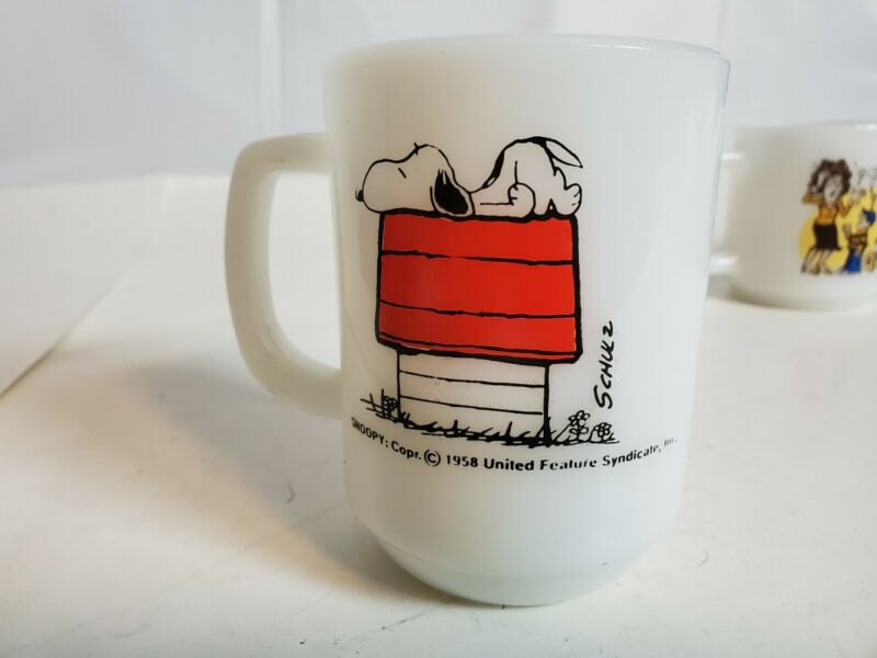 Title (ebay affiliate link): Fire-King Snoopy I think im Allergic Peanuts Milk Glass Ad Coffee Mug vtg