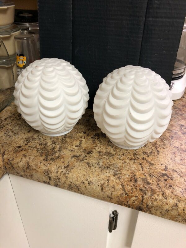 Title (ebay affiliate link): Vintage WHITE MILK GLASS LAMP GLOBE SHADE ART DECO SCROLLS EMBOSSED