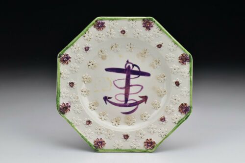 Title (ebay affiliate link): English Soft Paste Creamware Pottery Plate with Pink Luster Anchor Poss. Leeds