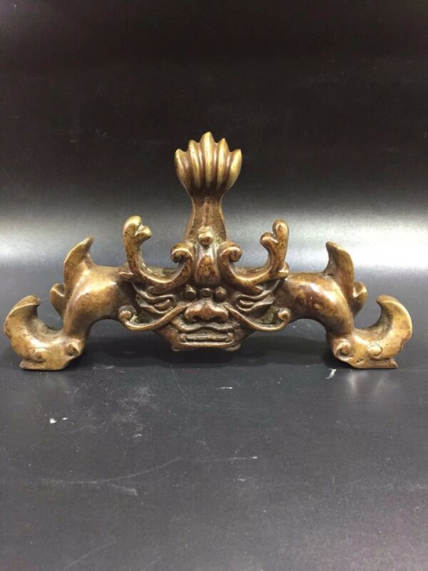 Chinese Old copper hand-made dragon shape penholder Decoration RN