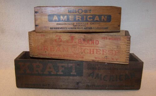 Title (ebay affiliate link): Nice 3 pc. Estate Lot - Old Vintage Wooden Cheese Boxes - Kraft, 3 J Brand +
