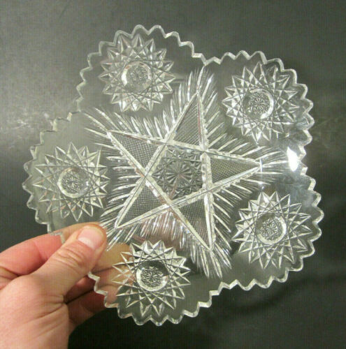 Antique DORFLINGER AMERICAN BRILLIANT ABP Cut Glass "MARATHON" Star 7.25" Plate