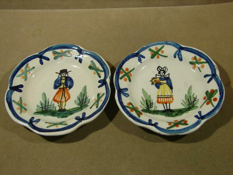 Vintage Signed Quimper Butter Pats Set Of 2 France