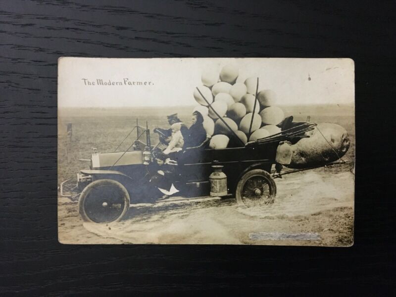 Title (ebay affiliate link): The Modern Farmer Exaggeration Postcard, Potatoes On Back Car W/family, Real Pho