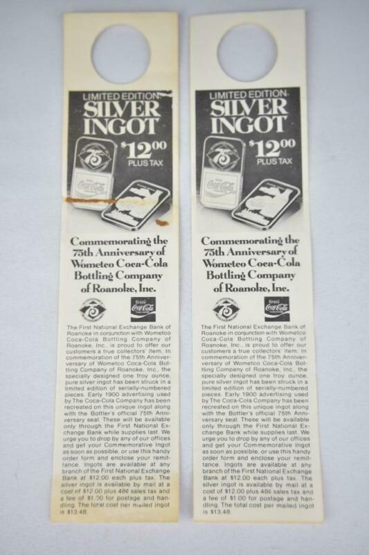 Title (ebay affiliate link): Vintage Coca-Cola advertising tag for Silver Ingot 75th Anniversary, Roanoke