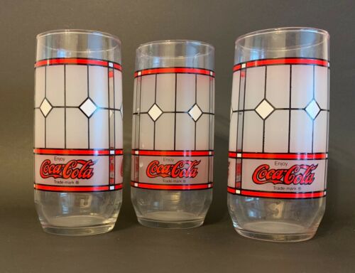 Title (ebay affiliate link): 3 Lot of Vintage Coca Cola Drinking Glasses"Tiffany Style" Frosted Stained Glass