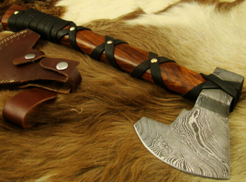 Title (ebay affiliate link): 15.3" ALISTAR BEAUTIFUL HAND FORGED DAMASCUS STEEL HATCHET CAMPING AXE (2670-2