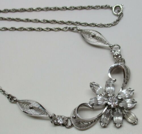 Title (ebay affiliate link): Antique STERLING SILVER Art Deco Chunky Clear Stone 16-3/4" Designer Necklace