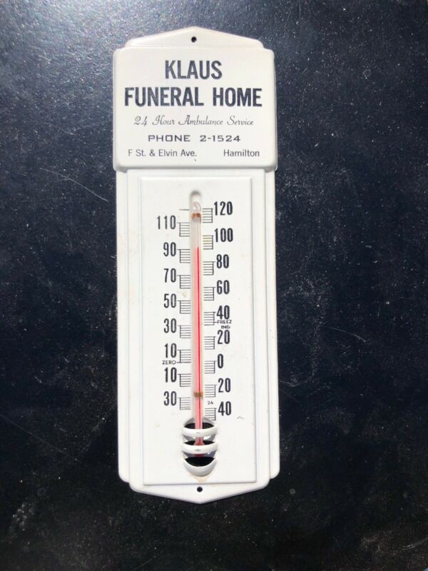 Vintage Advertising Thermometer Klaus Funeral Ambulance Service Hamilton