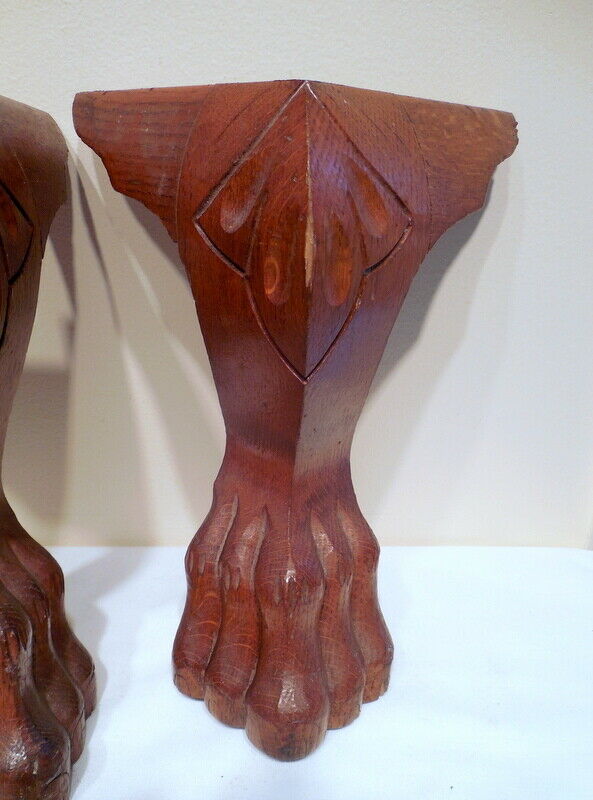 Set of 4 Antique Wood Oak Lion Claw Feet from chest salvage