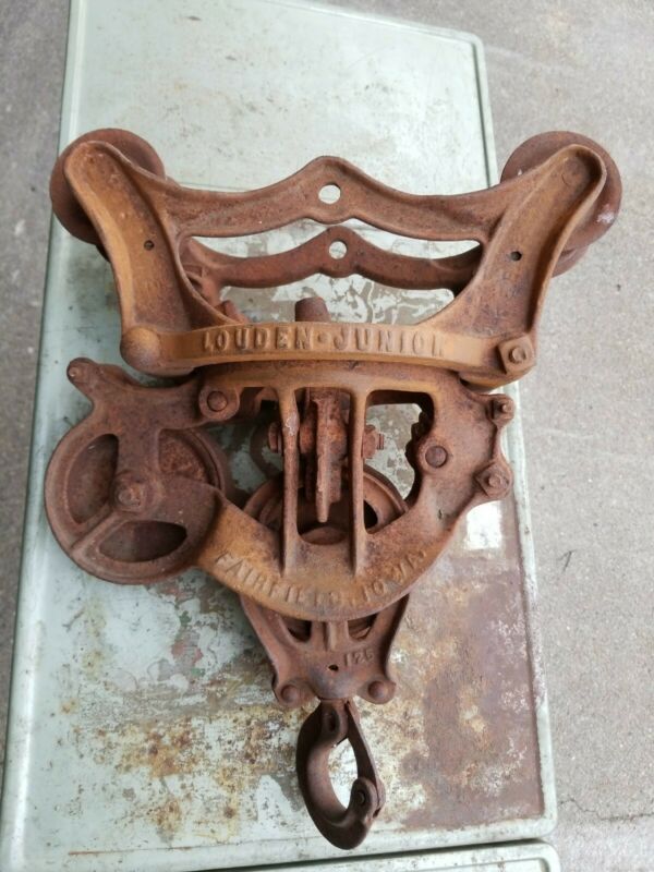 Title (ebay affiliate link): VTG LOUDEN JUNIOR HAY CARRIER-TROLLEY UNLOADER BARN PULLEY FAIRFIELD IOWA
