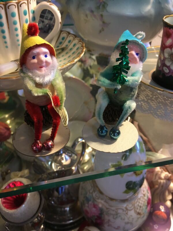 Title (ebay affiliate link): 2 Vintage Spun Cotton & Pinecone Elf Gnome Ornaments Japan Christmas Putz
