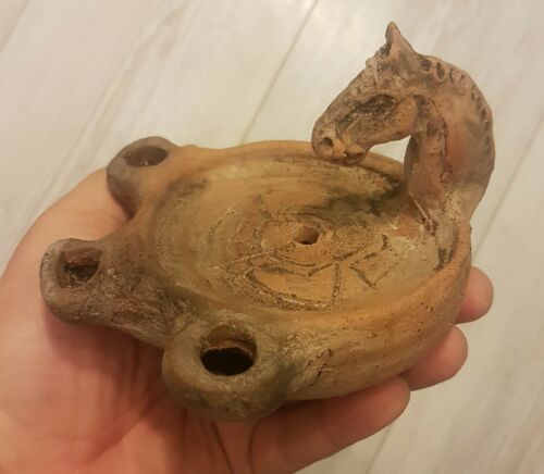 Title (ebay affiliate link): Very rare Pottery , Clay, Grece Oil lamp , Horse , circa 3-1 cBC