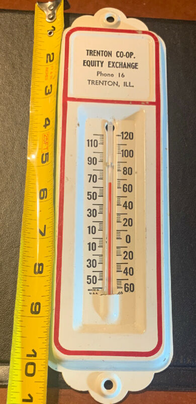 Title (ebay affiliate link): Vintage NEW Metal Outdoor Advertising THERMOMETER (Trenton Co-Op Equity Exchange