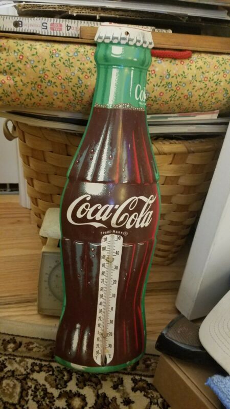 Title (ebay affiliate link): Vintage Coca Cola Thermometer Metal Bottle Shaped Sign 16 1/2"