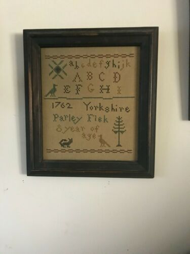 Title (ebay affiliate link): Primitive Colonial Counted Cross Stitch ABC Sampler on Linen NO GLASS