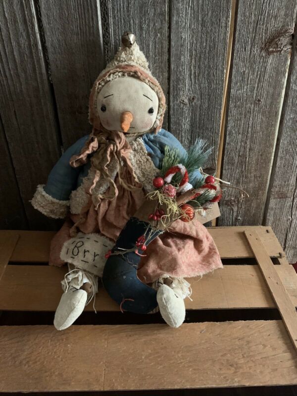 Title (ebay affiliate link): Primitive Raggedy Little Snowman,Snowgal, Doll, Christmas Stocking Old Quilt