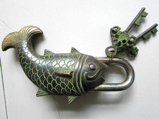 Title (ebay affiliate link): China bronze ancient lock golden fish shape with key furniture old collectible