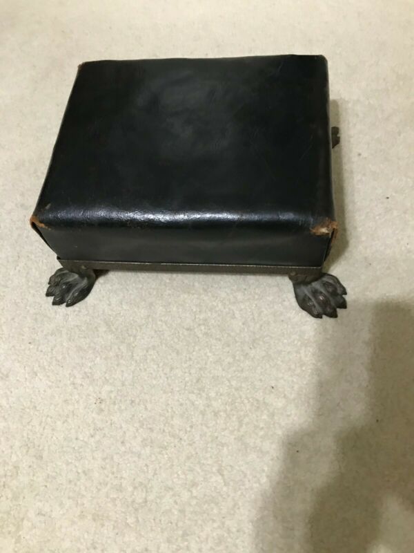 Title (ebay affiliate link): Antique Black Leather Foot Stool & Metal Claw Feet, 10.5 x 8.5 x 5
