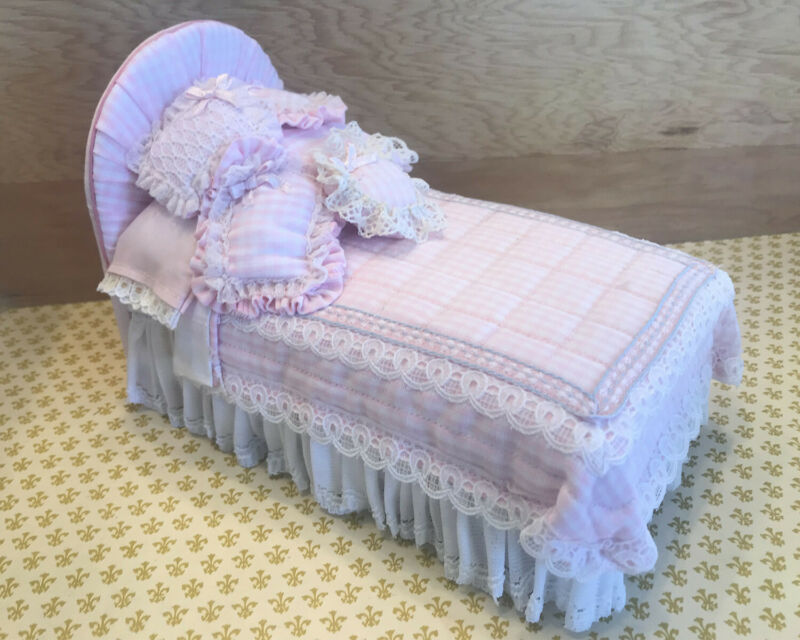 dollhouse furniture beautiful detailed bed handmade frilly bedding pink