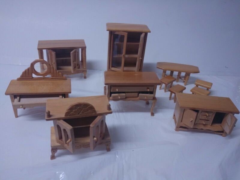 Title (ebay affiliate link): New Dollhouse Wood table Hutch Cabinet dresser 7 pc Furniture Lot 3" - 5"