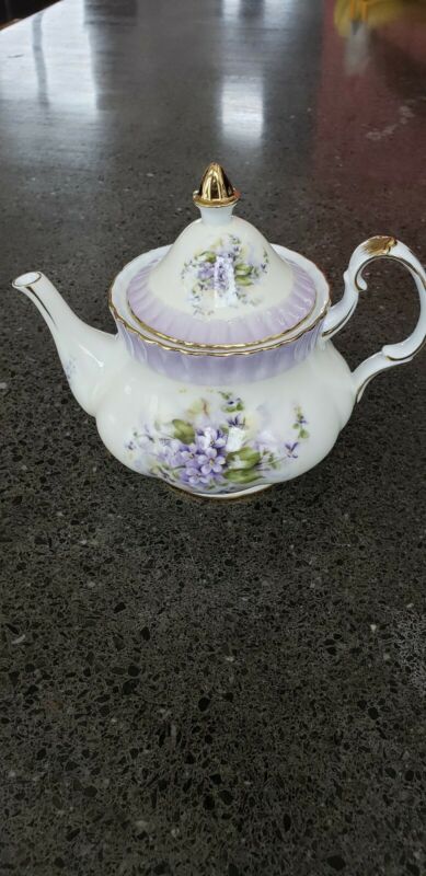 Title (ebay affiliate link): Burton And Burton China Teapot: White & Purple W/ Gold Trim And Violets