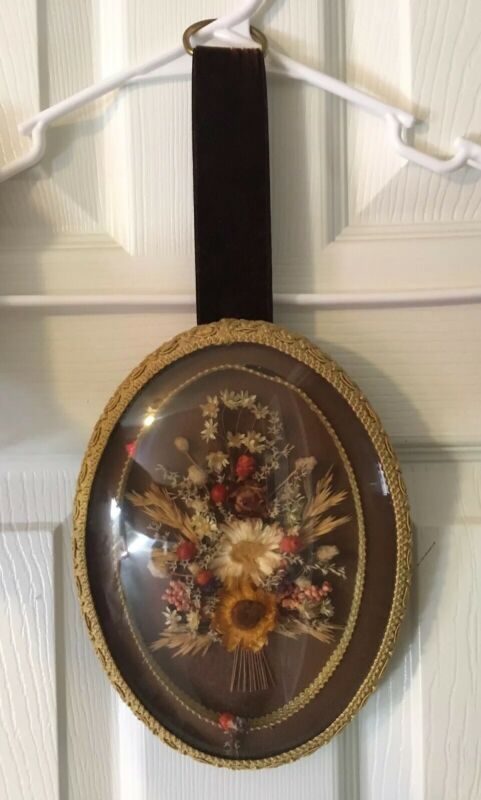 Title (ebay affiliate link): Vintage Bubble Dome Convex Glass Framed Straw Flower Bouquet Made In Belgium