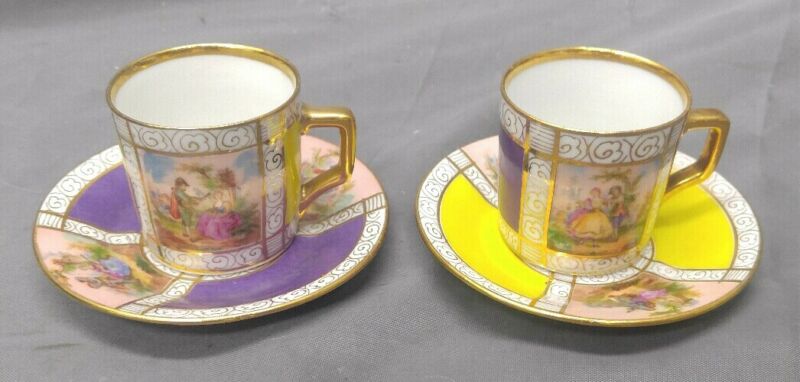 Old Vintage Hand Painted Porcelain Demitasse Cups and Saucers FSK Czechoslovakia