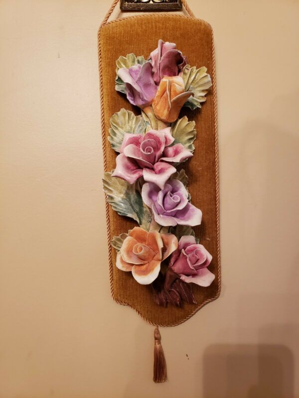 Title (ebay affiliate link): capodimonte flowers unique vintage wall hanging 16" plus hanger and tassel