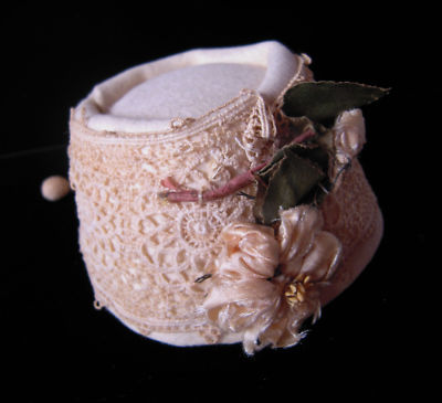 Title (ebay affiliate link): Antique Old DOLL HAT ~ Handmade w/ LACE & RIBBON FLOWER
