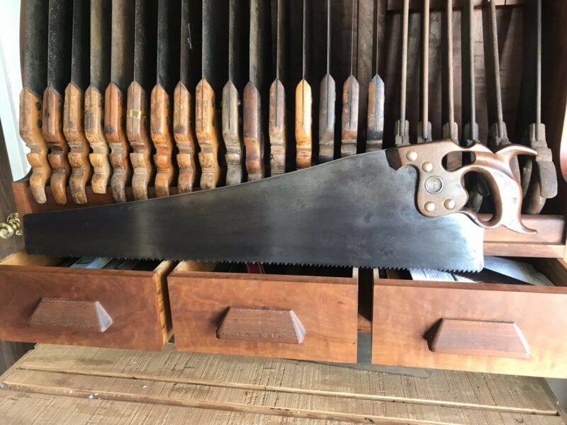 Title (ebay affiliate link): 1880''s 5 Patent Dates Disston D8 Thumbhole 28" 5 PPI Rip Saw Custom Hand Filed