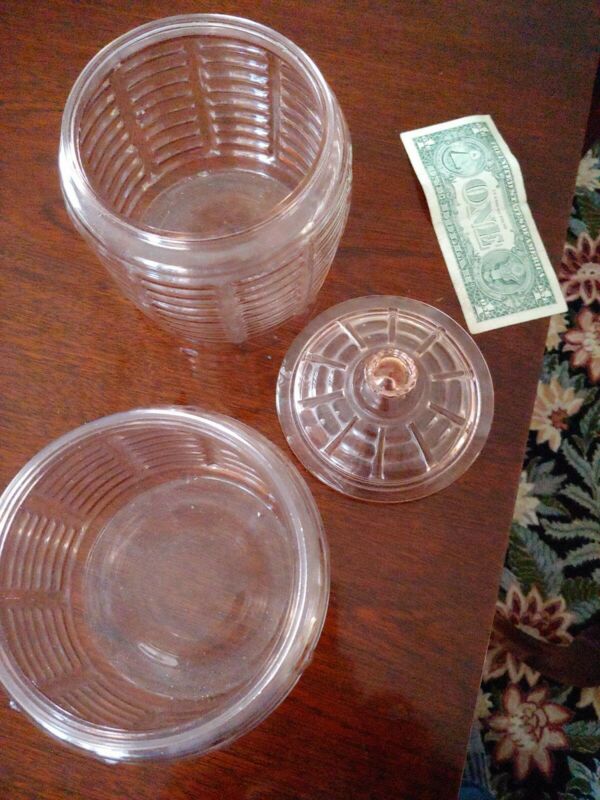 Title (ebay affiliate link): Vintage Pink Depression Era Glass Canasters 1 With Lid
