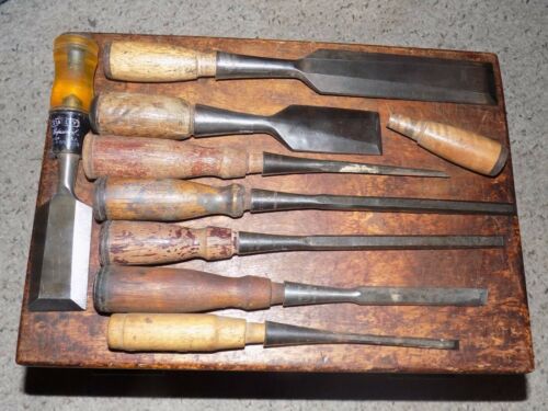 Title (ebay affiliate link): 8 VINTAGE STANLEY CHISELS WITH WOOD HANDLE SOCKET TYPE