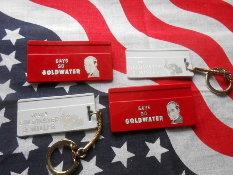 Title (ebay affiliate link): LOT OF 4 POLITICAL CAMPAIGN 1964 BARRY GOLDWATER PLASTIC BADGES