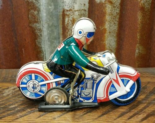 Title (ebay affiliate link): Vintage Wind Up TIN TOY MOTORCYCLE & RIDER 1970''s Clockwork 702 made in China