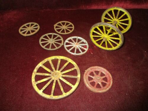 Title (ebay affiliate link): LOT OF CAST IRON AND OTHER METAL TOY WHEELS FOR SALVAGE OR REPURPOSE, 7 PIECES