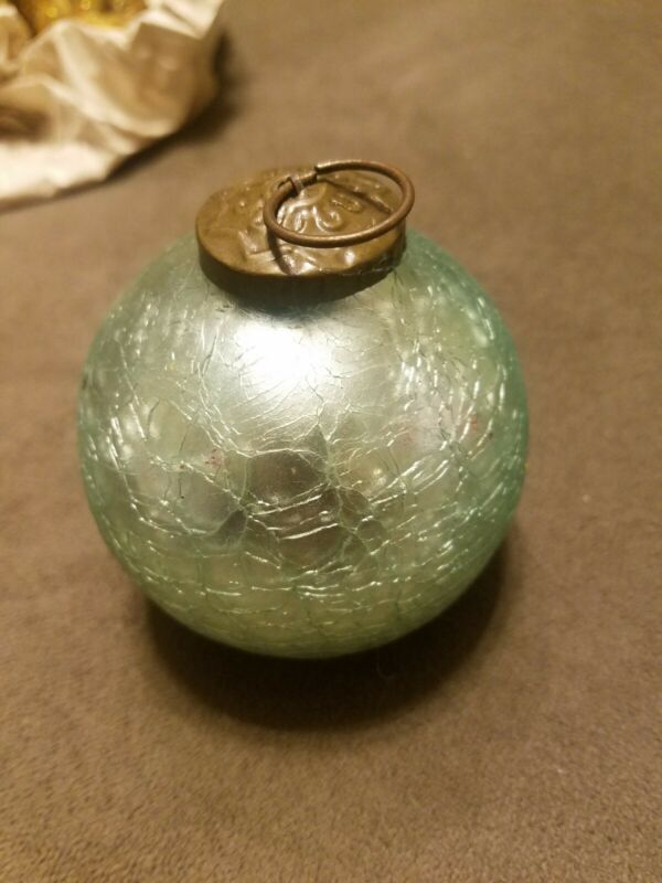 Title (ebay affiliate link): Antique turquoise Mercury Crackle Glass German Kugel Christmas Ornament 3"