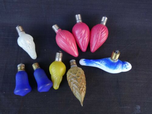 (9) WORKING VINTAGE C6 FIGURAL GLASS CHRISTMAS LIGHT BULBS