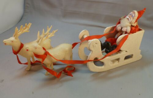 Christmas Santa, Sled, Celluloid Reindeer, Japan
